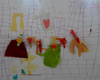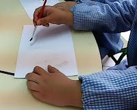 Uns meninos desenharam uma letra e outros desenharam outras coisas.
